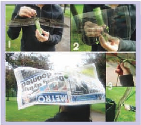 常规雨伞的伞面是固定的,虽然伞面可以更换,但是要换伞面并不容易。这种环保雨伞的设计更加灵活,事实上它只是一个没有伞面的轴环伞骨架,因此你可以拿报纸、塑料袋或者其他任何东西做伞面。