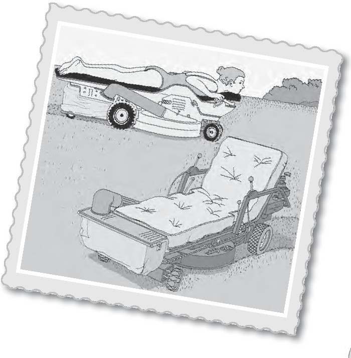 “真是太好了!”吴晓宇一蹦三尺高。远处,有人正开着一辆车行驶在草坪上。时间机器告诉大家,这位园丁正在整理草坪。吴晓宇走过去一看,这台割草机好先进,简直就是一辆车,只是比一般的车具备了割草的功能而已。“这台割草机好拉风啊!”吴晓宇很是羡慕地说。