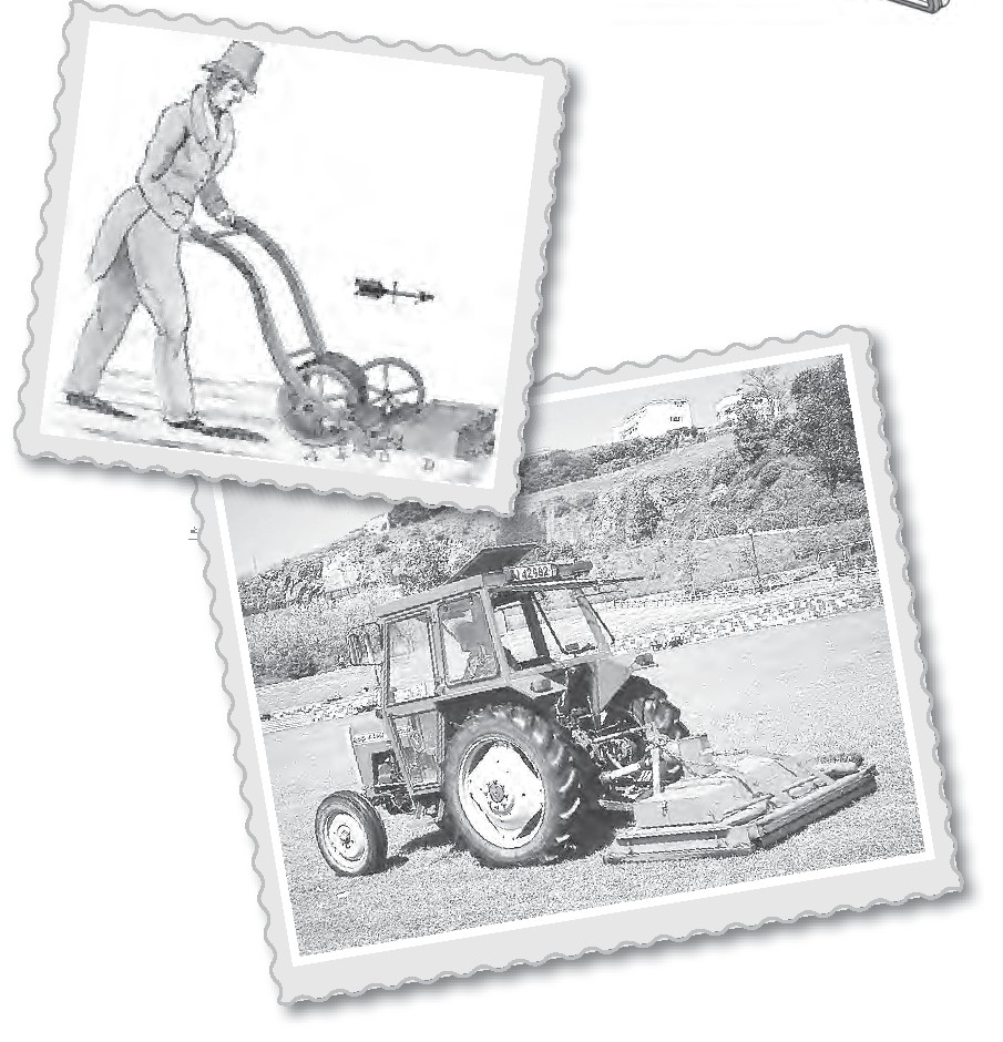 “你说得没错!后来,割草机被好几家公司进行生产了。其中就有一家叫作‘伊普斯威奇的兰索姆斯’的商行。这家公司于1899年开始制造机动割草机,由小型汽油发动机提供动力。”时间机器说。