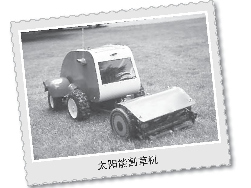 “没关系,我们可以选择太阳能割草机,现在市场上已经出现了太阳能割草机,而且节能又卫生。”时间机器告诉大家,“瑞士的富世华公司设计出了一种太阳能混合动力自动割草机——‘瓦力’。这是世界上第一台自动化割草机,既可由电池动力驱动,也可以由太阳能供给动力。”