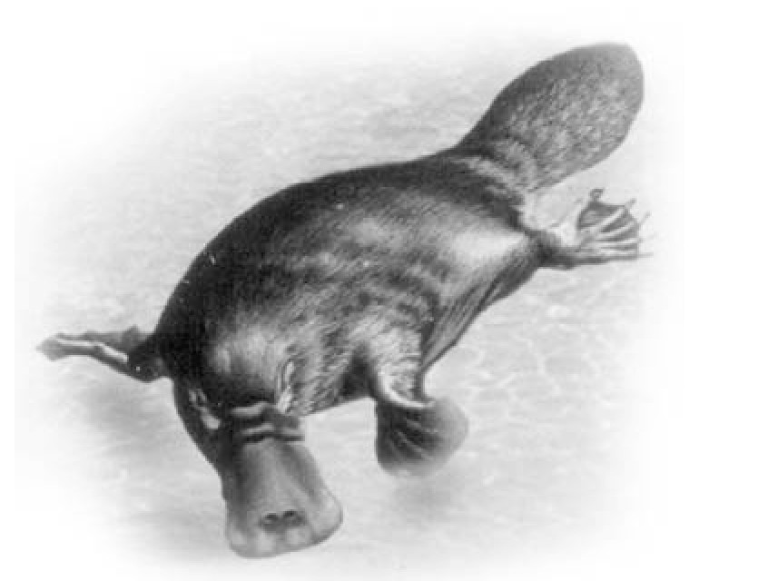 凡是见过鸭嘴兽的人都说它长得实在太怪异了。当初英国移民进入澳大利亚发现鸭嘴兽时,惊呼其为“不可思议的动物”。鸭嘴兽有平而扁的阔嘴巴,短而钝的粗尾巴,还有一对蹼。乍看起来,同家鸭差不多。而它那身漂亮而柔软的灰色绒毛,可与我国的特产水獭媲美呢。