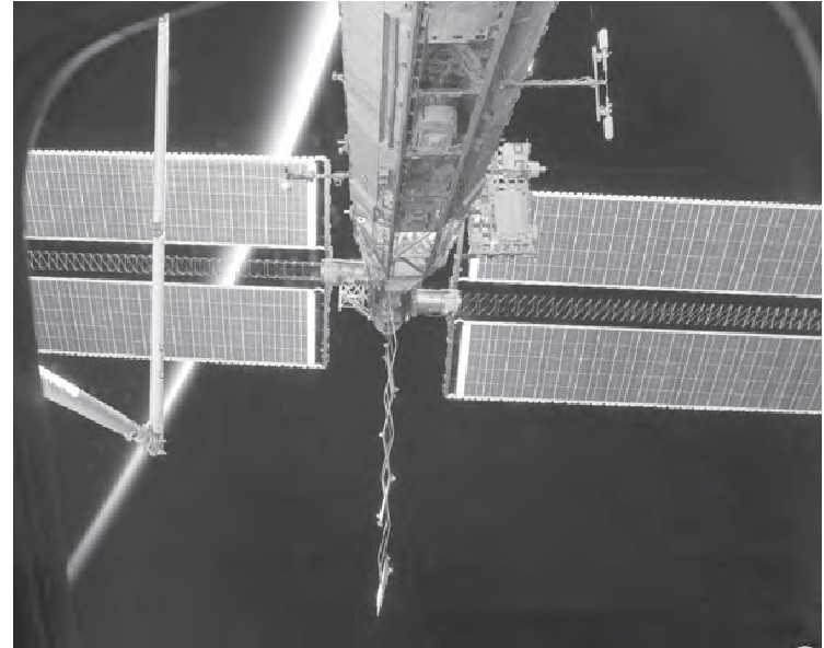 国际空间站使用的太阳能电池阵长73米,面积超过4 000平方千米,每小时可生产90度电,如此高效的代价就是电池板的重量也不含糊,足足84吨!