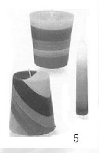 4.蜡冷却后,再倒入别的颜色的蜡,这样把不同颜色的蜡一层层加上去。
