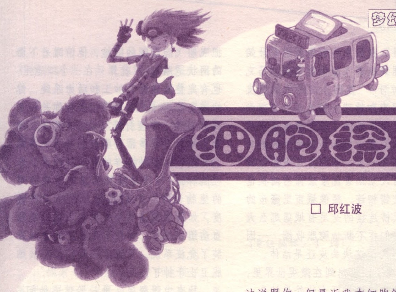 苏理指着实验室内一部微型车模样的东西说:“马克,这就是'细胞探索号'飞船,只要把我们和它一起缩小,我们就可以在人体细胞内旅行,不错吧?”