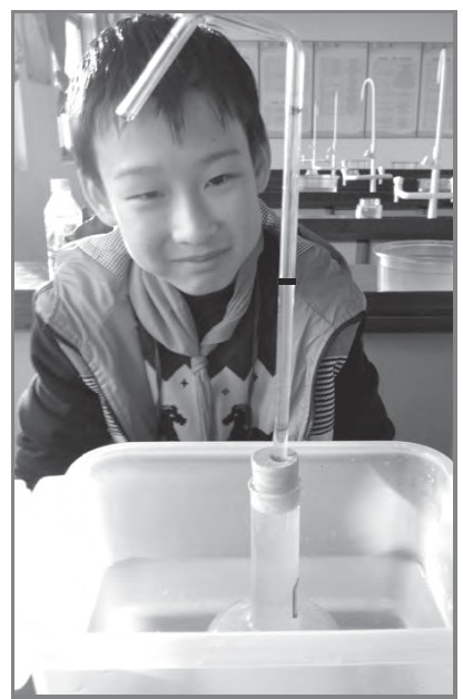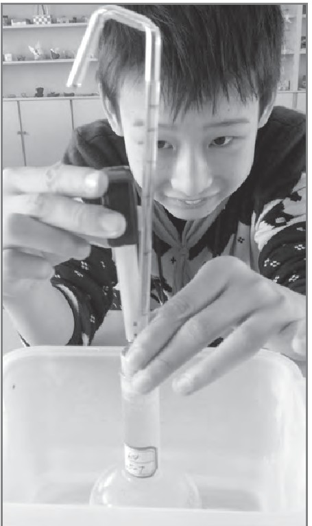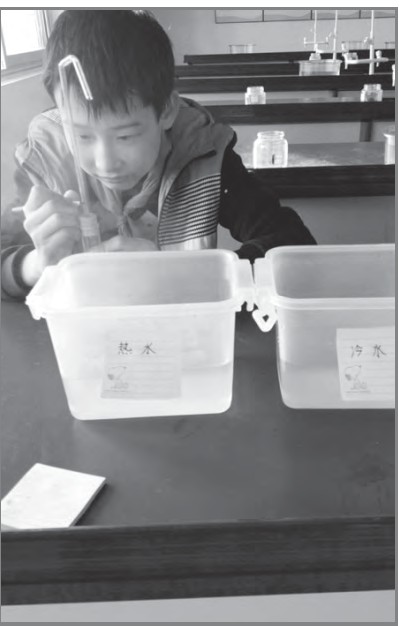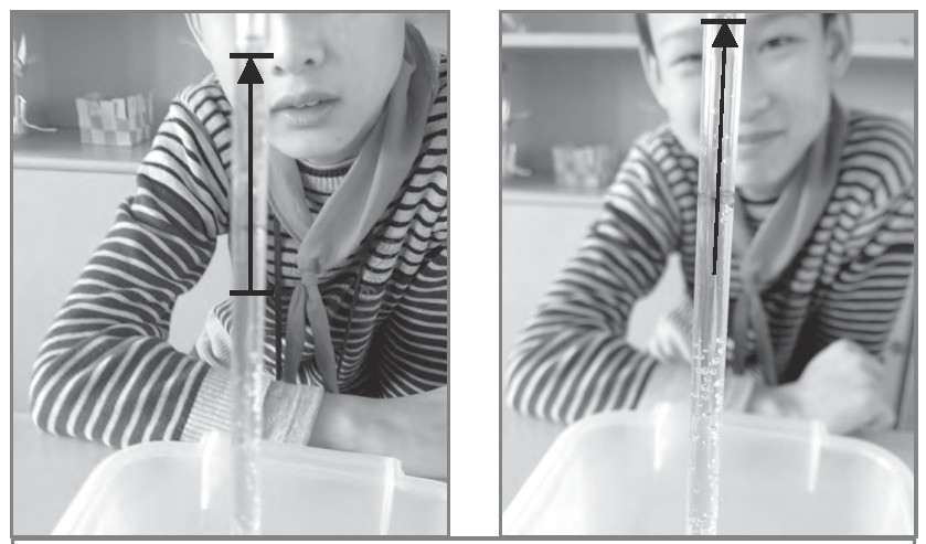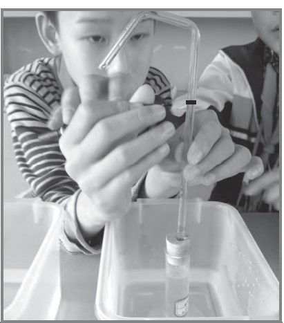 首先,我们从学校小卖部买来一瓶普通碳酸汽水,将其倒入一个平底烧瓶中,并迅速把带有玻璃导管的橡皮塞塞住瓶口,然后观察玻璃导管中的汽水在没有受热情况下的起始位置,做好标记。接着我们把平底烧瓶放入热水中,1分钟后观察汽水的液面位置,并再次做好标记。