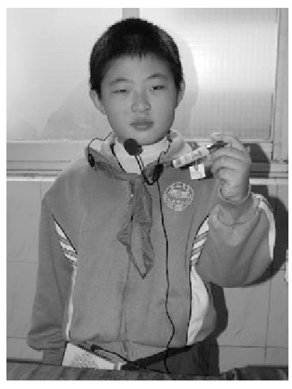 五年级的朱壬铎同学手上拿着的是他精心改进过的钢笔。朱壬铎同学在写寒假作业时发现,一到冬天,金属质的钢笔握在手里特别冷,而且还越来越冷,手经常被冻得通红。戴上手套写吧,也不方便,字也写得不好看。既然不能自己戴手套,那给钢笔戴个“手套”怎么样?朱壬铎同学马上想到了这个创意。于是他用废旧的毛织品,比如羊毛袜,按照笔杆的长短进行修剪,然后将其包裹在钢笔上,并用毛线缠稳,结果效果还真不错。这个创意真棒,同学们都说也要给自己的钢笔戴上手套。