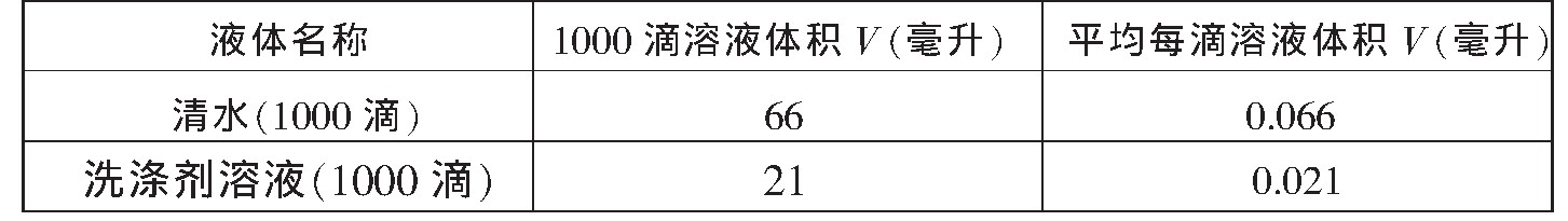 洗涤剂水溶液和清水分别以相同的滴数(1000)滴入量筒,测量结果为: