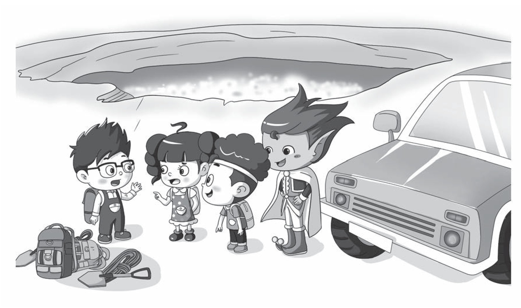 转眼间,奥秘精灵带着三个兴奋的小伙伴坐上时间机器来到了一望无际的沙漠。