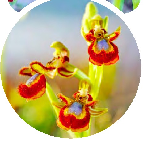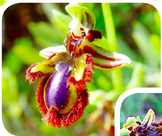 角蜂眉兰生长在地中海沿岸,春天开花。角蜂眉滚圆而毛茸茸的唇瓣上,分布着棕黄相间的花纹,像雌性角蜂的身躯,而伸向两侧的花瓣,恰似展开的蜂翅。不仅如此,它还分泌类似雌性角蜂的性激素物质。在花间飞舞的雄性角蜂见了,以为是异性,于是钻进花中企图交配。等知道上当受骗时,雄性角蜂身上已经沾满角蜂眉兰的花粉,通过这样的方式角蜂眉兰的花粉得以传播。