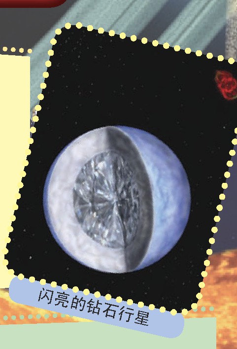 在科学家描绘的星球结构图中,整颗行星晶莹剔透,就像是一颗闪亮的大钻石。事实上,任何星球都不可能是一整块岩石。也就是说,钻石行星的表面会有许多石块,这些石块是闪闪发光的宝石。如果有幸登陆到这颗行星,在支付了价格不菲的飞船费用后,满地的宝石就随你挑选了。