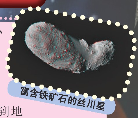 美国科学家分析日本“隼鸟”号探测器对丝川小行星拍摄的图像后发现,小行星部分区域颜色比其余区域更深更红。科学家认为丝川星上富含铁矿石,表面的红色就是铁矿石的颜色。丝川星与地球直线距离约为3亿千米,显然把丝川星上提炼的铁运回到地球很不划算。但是,研究人员却认为可以在那里建一个太空基地,利用那里的铁造太空探测器,便于探测更遥远的深空。