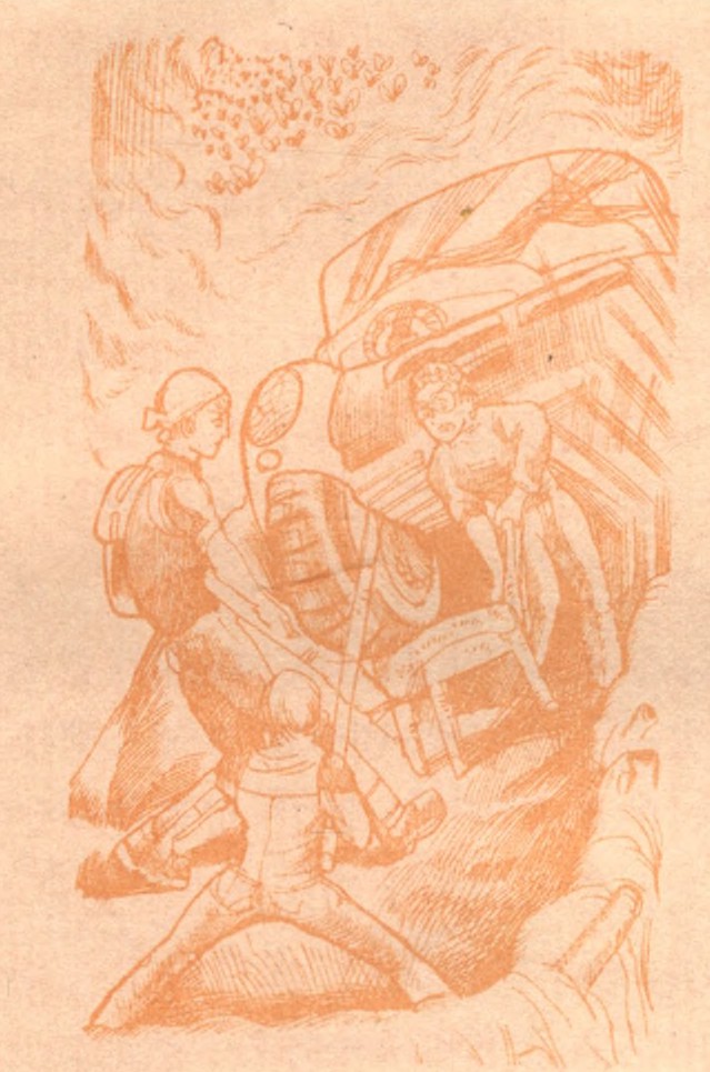 二人合力,总算弄出了一只前轮。小D赶紧将一块破椅靠塞到车轮下,鲍里斯机灵地跳进驾驶座。