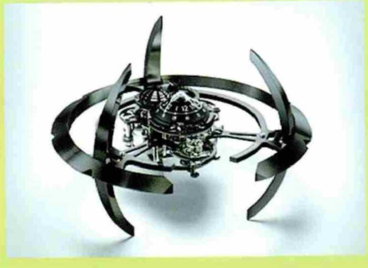 这款星际机器钟表,未来感很强。因为设计师受到了《星际迷航:深空九号》的启发,将其设计得十分科幻,张力与想象力十足,而且这块钟表上足一次发条就可持续运转40天。