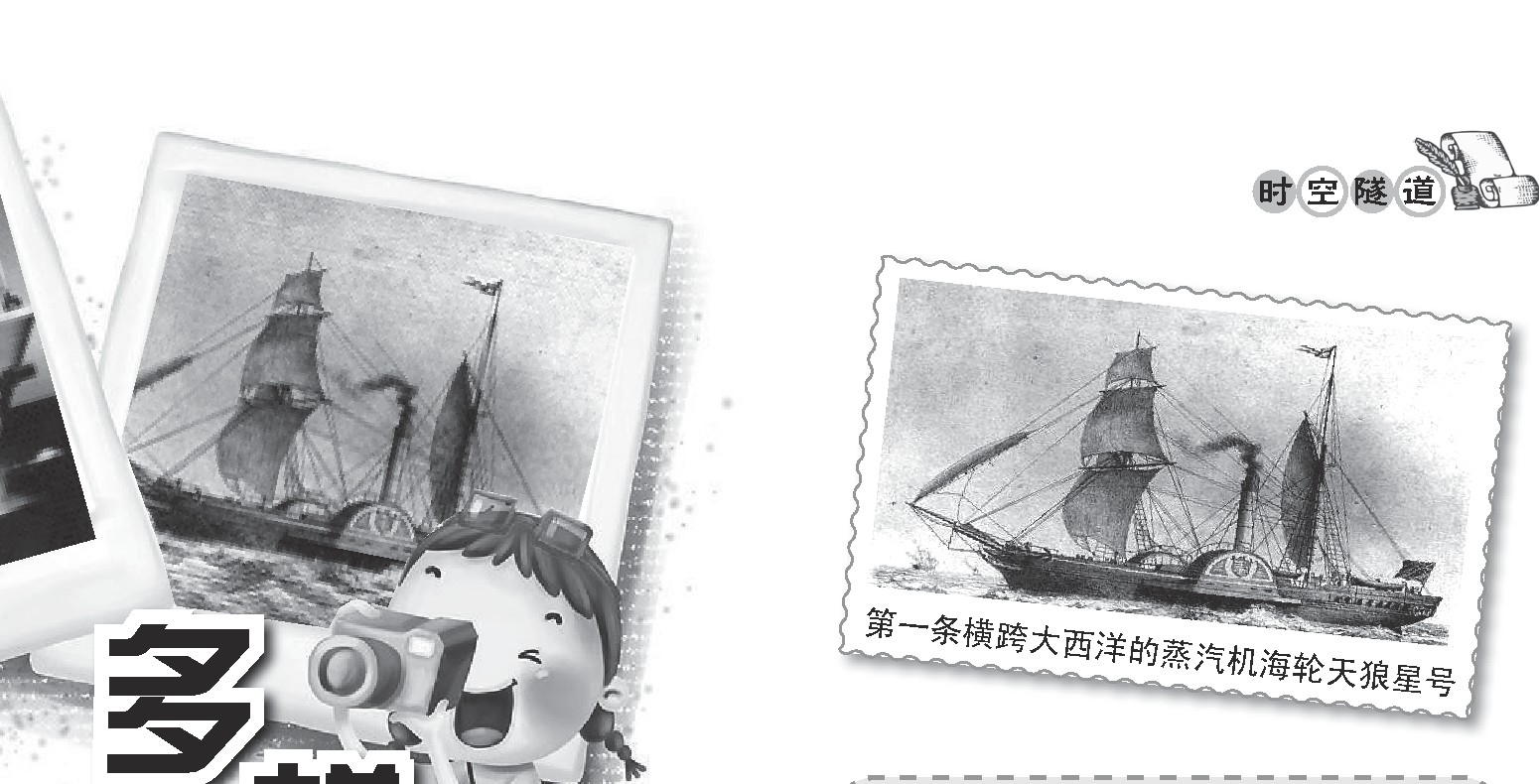 贾波特:“你看!远洋客船吨位大、航速快,为旅客准备了舒适的生活设备。”