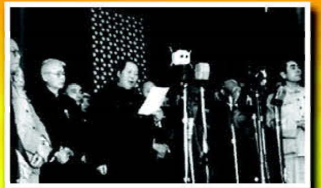 毛泽东主席在天安门城楼上主持开国大典