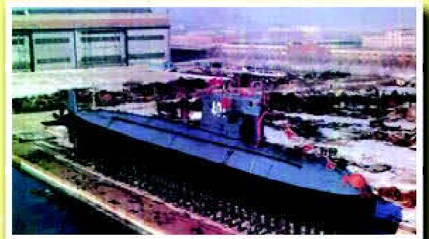 我国自主建造的第一艘核潜艇下水。