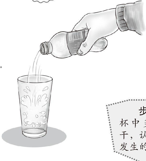 步骤1 找一个透明的玻璃水杯,往里面倒满雪碧。