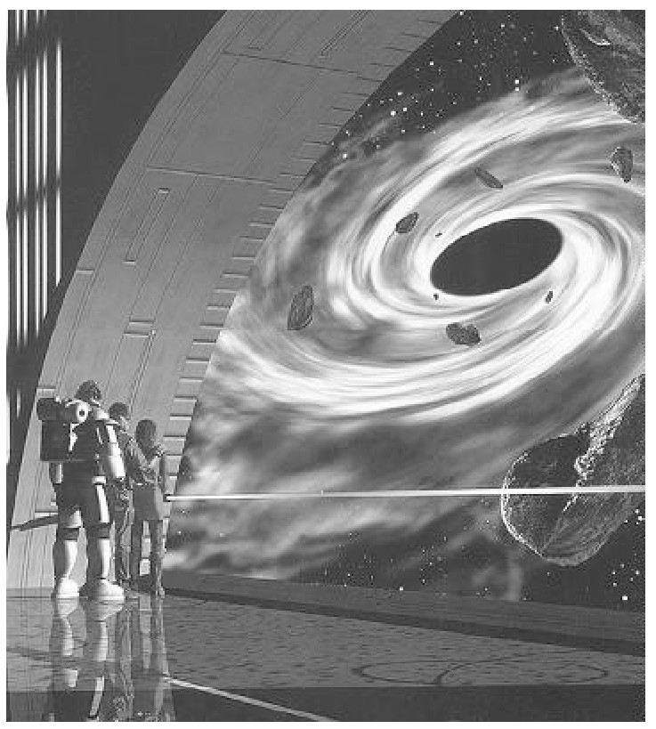 一切准备好后,星际时空穿梭机起飞了。飞行器里的国王透过瞭望窗,看见外面仿佛一张立体、闪亮而又五彩斑斓的巨大蜘蛛网,自己正在网中央穿梭。