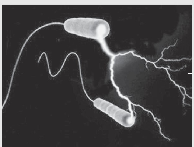 1910年英国科学家意外地将实验材料铂掉进了大肠杆菌的培养液里,结果发现在铂的一个端头产生了电压。这个发现先是让科学家们惊讶万分——原来细菌也可以发电!