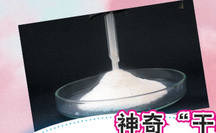 很多人只知道液态水、固态水和气态水等,而英国利物浦大学的科学家已研制出神奇的“干水”。这种物质有些像糖粉,它将能够让化学物质的利用方式产生革命性变化。“干水”的每一个粒子都包含一个水滴,这个水滴周围包裹着一层沙质硅膜。所以说,所谓的“干水”,其95%的成分其实仍然是“湿水”。