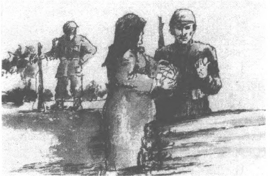 △④一天,有位德国农妇挎着篮子姗姗走到德法交界的法军岗哨面前,要求通过岗哨到德军防地探亲。