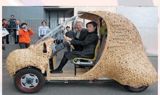 日本京都大学的研究人员认为汽车能耗高主要是车身太重。况且,制造车身所需的各种人造材料十分耗费能源。为此,他们决定把汽车车身的材料换成天然材料,最终他们认为竹子很适合,因为竹子制成的汽车车身很轻,而竹子的强度比较大,耐用性和防撞性能都很好。这款竹子汽车看上去像一个大笼子,采用电力作为驱动力,十分环保。这种生态概念车也是单座,长2.7米,宽1.3米,高1.65米,净重只有60千克。