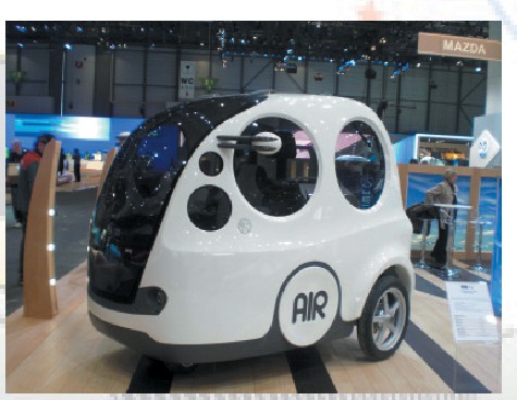 虽然有不少人设计出了空气动力汽车,但是卢森堡人设计的这款“空气舱”汽车更具未来色彩,就像是来自太空的飞碟一样。这款汽车的底盘上有一个空气压缩罐,可以为汽车发动机提供压缩空气。压缩空气在发动机中不会燃烧,所以也就没有有害气体排放。在充气站,向储气罐注满压缩空气只需要两三分钟。汽车每次充气花费1欧元,可以行驶220千米。车内也附带了一个内置的空气压缩机,利用家用电源插座在8小时内可以完成充气。