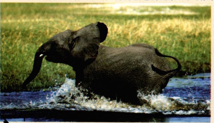最会戏水的陆地动物要算是大象了,它们会游泳,喜欢在泥水里打滚,更 好玩的是它们那长长的鼻子还是玩水的法宝——当一群大象聚在水边时,总是用鼻子吸水后再给同伴喷水,既是玩耍又能避暑。