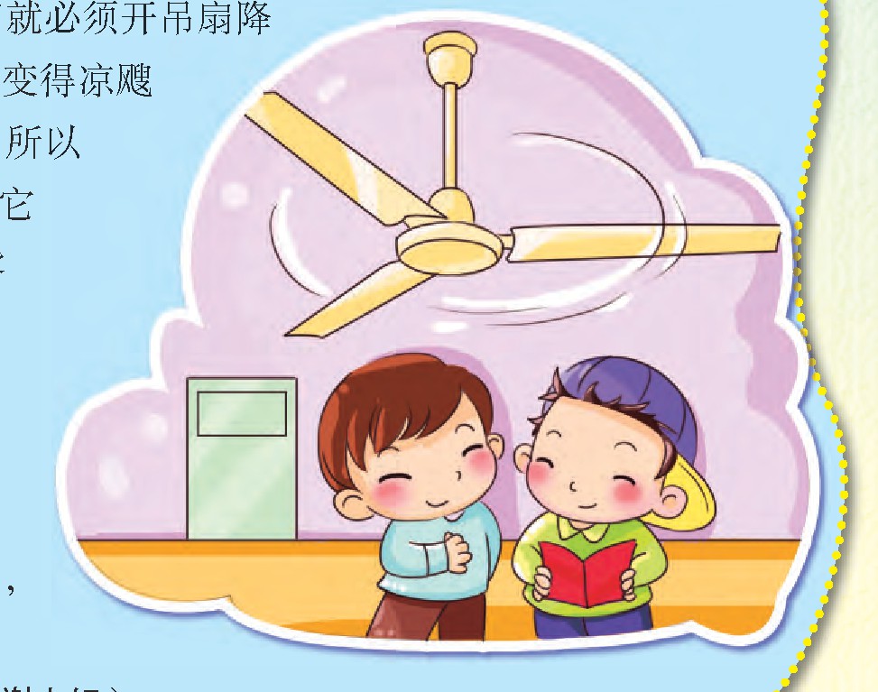 每当秋季来临,对于教室里只有吊扇的我们来说,就很麻烦。因为有时候,阳光很大,我们就必须开吊扇降温,但过不久就可能下雨,变得凉飕飕的,又不得不去关吊扇。所以我想发明一种温控吊扇,它只比普通吊扇多了一个零件,那就是温度传感器,它与开关连接,若教室温度很高,吊扇就转得快,若温度适宜,吊扇的转速就放慢或者自动停止。这样,同学们就能安心地学习了。