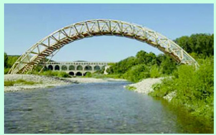在法国南部的加登河上,有一座用普通的硬纸筒建造起一座桥梁。虽然这座硬纸筒大桥看上去很脆弱,但它曾经可以承受20人的重量。不过这座大桥在对外开放使用了6个月之后,就不得不拆去,原因是雨季到来了。