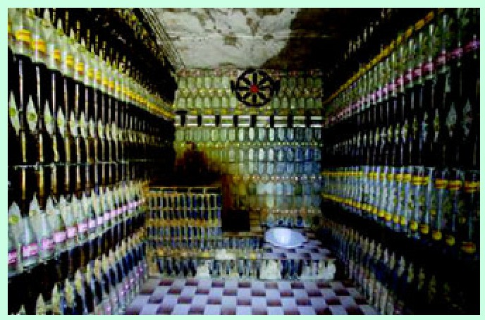 泰国的僧侣用超过100万个回收的绿色和棕色啤酒瓶建造了一间寺庙,聪明的僧侣这样做是一举两得,他们回收利用这些丢弃的啤酒瓶,治理了当地的环境污染;此外,他们还利用啤酒瓶廉价地建造了自己的寺庙。从寺庙的水塔至游客的洗手间,都是用啤酒瓶建造。
