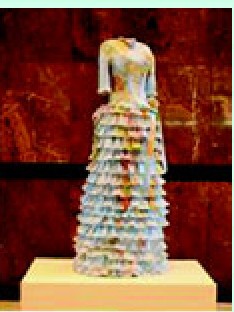 这种裙子实际上可能无法穿在身上,但是它们非常清亮,它们是由咖啡纸杯、茶叶袋和用过的地图制造而成的。这些裙子看上去非常像玫瑰花,腰带和褶饰边让人们想起了几个世纪前的服饰风格,这件由一次性复制品制造的艺术品是变废为宝的“美丽典范”。