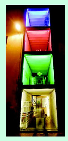 船运集装箱是看上去是丑陋呈长方形结构的物体,而且经常生锈,但是稍加利用,它们便能成为漂亮的现代家庭住房。由于船载集装箱空仓运输成本过高,目前许多国家闲滞着大量的集装箱。但是当设计师将它们重新设计后,原本当作废品处理的集装箱转眼便成为适合办公和居住的现代时尚房间。