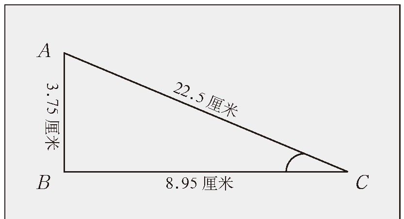 5.依数据做直角三角形ABC,一直角边AB为钉长,另一直角边BC为影长,连接AC。量角C的度数,即为该时刻的太阳高度。
