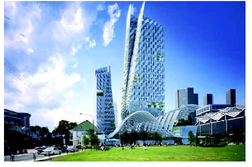 新加坡以花园城市而著称,新加坡居民都希望他们这个岛国能够永远接近大自然。这栋摩天大楼,既为城市中心增添了许多住宅和办公室,同时也为该地区带来了绿色的环境。空中花园、绿色阳台和地面花园构成一个绿色的立体空间,一个巨大的天篷可以为居民提供一个休憩的场所。