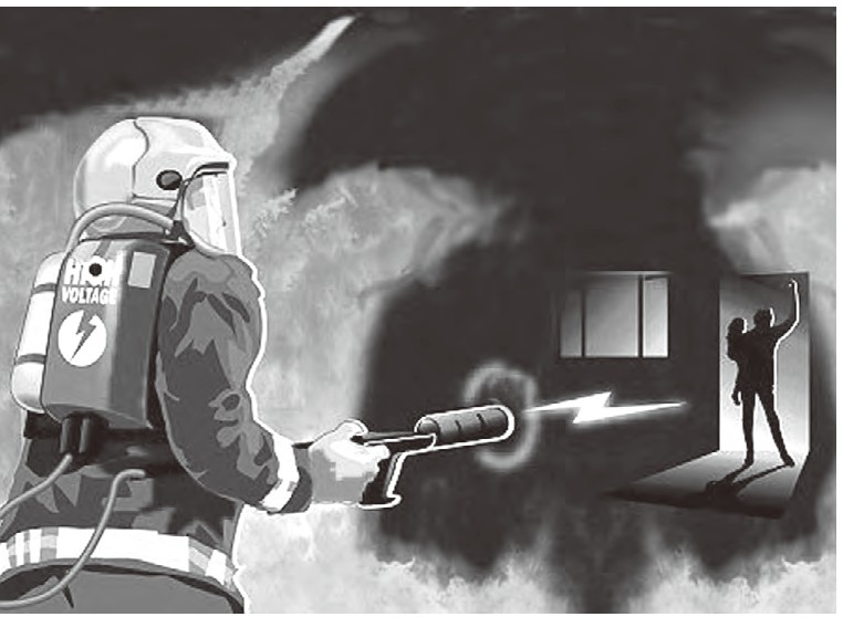 相较于目前常用的水或泡沫灭火,这种新型器具在灭火时造成的破坏要小得多。同时,它还可以让消防员更快捷安全地开展灭火工作。消防员首先用灭火电棍将火苗“分割”开,随后通过向火舌发射电流进行灭火。这样,消防员就能安全进入发生火灾的建筑,帮助被困人员逃离,也提高了救援效率。