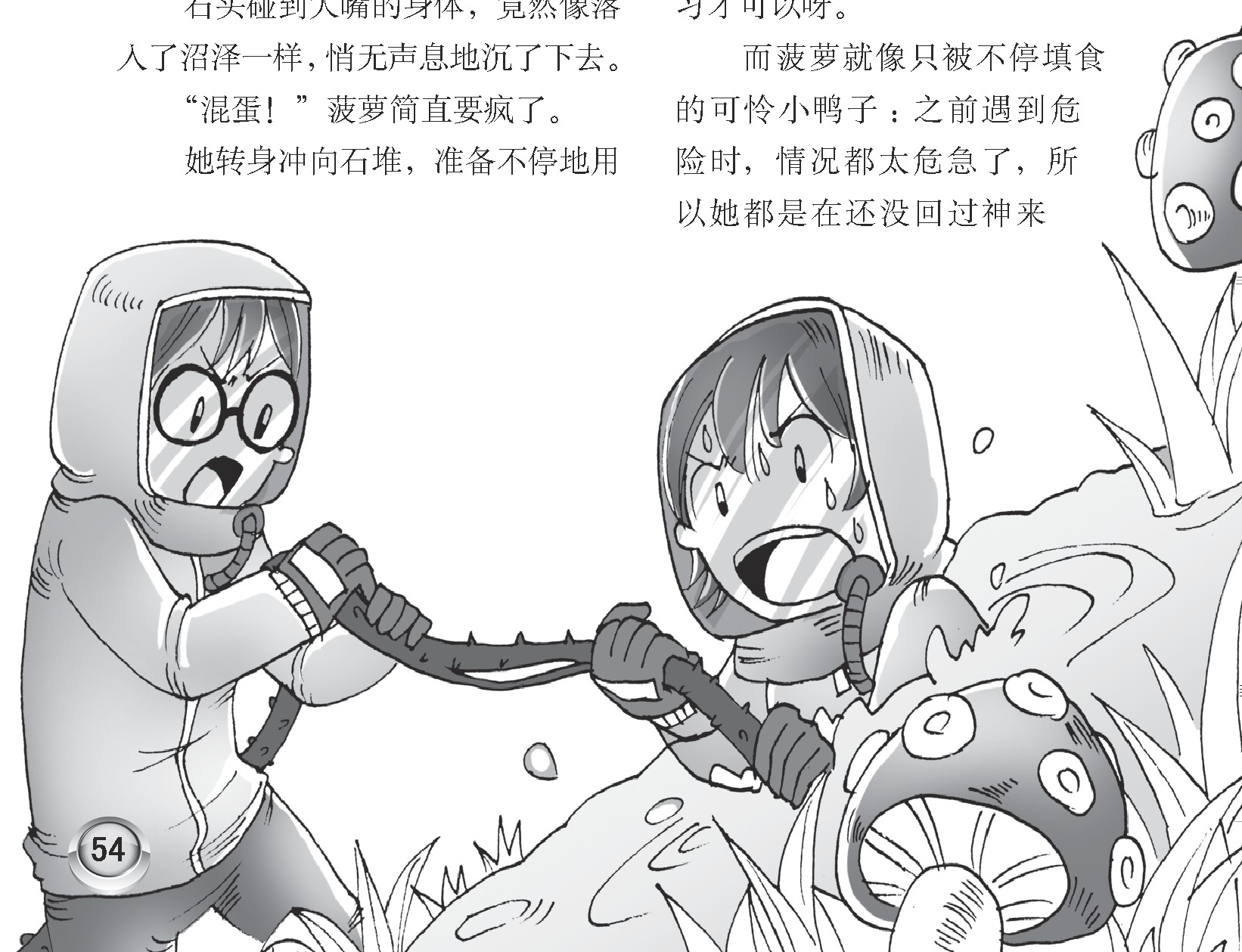 熊多来走在菠萝的前面。他跟着爷爷也经历过几次有惊无险的科学探险,对野外比较了解,所以当他感觉到脚下踩的感觉不同时立刻就放轻了脚步:“别急。爷爷说,越是陌生的地方越要冷静和小心。”
