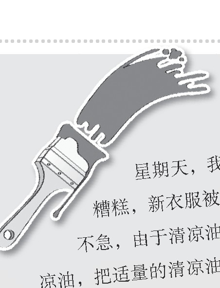 星期天,我们穿上新衣服去公园玩,一不小心蹭上了刚刷了油漆的栏杆,糟糕,新衣服被油漆弄脏了,怎么洗呀?