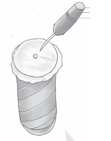 步骤4另一头空心处粘上透明的塑料薄膜,并挖一个观察洞。