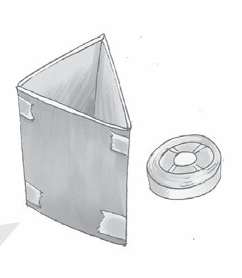 步骤3在三角空心体的外面卷上硬纸板,让玻璃球出个头。