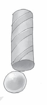 接着,小豆丁拿起一个玻璃球,说:“现在我要把我手中的这个球卡在空心体的一头,记住同样要用胶带固定住哦!”玻璃球被固定以后,小豆丁拿来硬纸板把空心体严严实实地卷了起来,只露出了玻璃球的头。