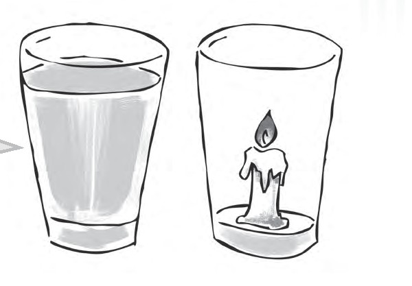 “当这个盛着燃烧蜡烛的玻璃杯在密封的环境下,耗尽了玻璃杯中的氧气后,杯子里的气压会随之降低,而盛满水的杯子的气压仍然是正常的,水就会被大气的气压压进装着蜡烛的水杯中了。”