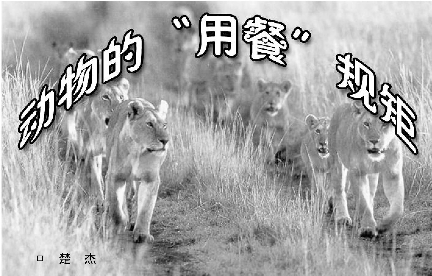 动物也和人类一样,在“吃什么,怎样吃,与谁一起吃,先吃什么,后吃什么”等方面都有其自己的规矩,下面就让我们看一看动物在“餐桌”旁是怎样表现的吧!