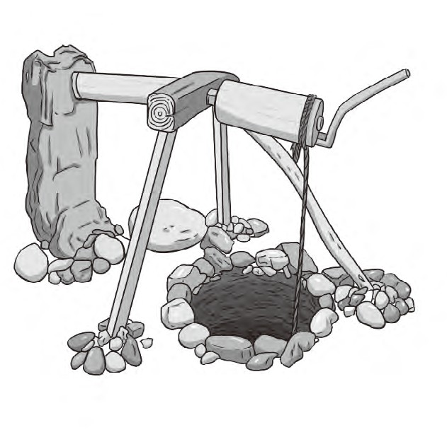 还是我来告诉你们吧,它叫辘轳(lùlu),是一种利用轮轴原理工作的机械。早在公元前1000多年前的西周时期,我国劳动人民就已经发明了辘轳。辘轳的制造和应用,在古代是和农业的发展紧密结合的,它广泛地应用在农业灌溉上。辘轳的功劳很大,它的出现解决了深井取水问题,也标志着人类利用地下水进入新的阶段。如今在一些地下水很深的地方,也还在使用辘轳从深井中提水,以供人们饮用。