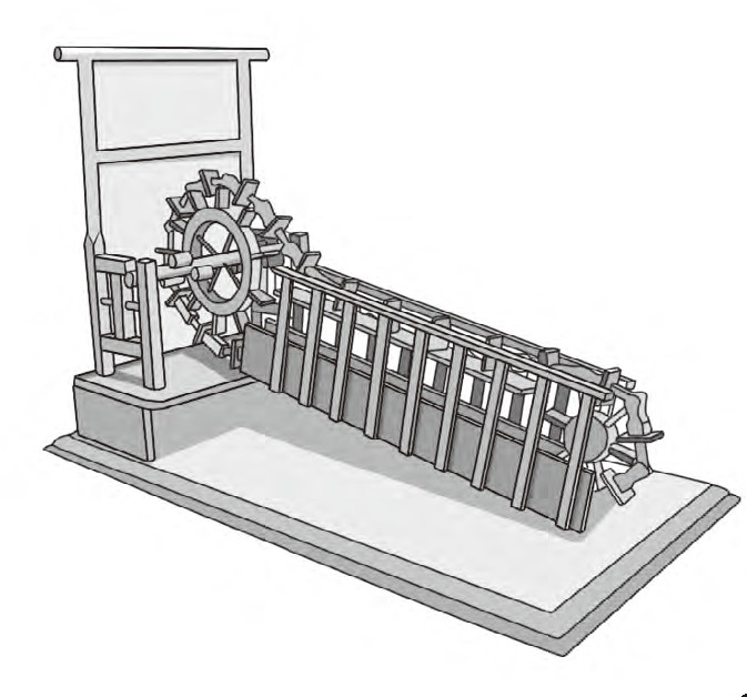 接下来介绍的龙尾车,和翻车很像,但它是从外国引进的。明朝杰出的科学家徐光启所著的《农改全书》中介绍了一种西方灌溉水车——龙尾车,但当时还只停留在宣传阶段。19世纪中期,林则徐在江苏省荆溪县组织了一次龙尾车试验活动。操作者使用龙尾车,一人一天可以灌溉农田三四十亩(2万~2.6万平方米),比使用翻车要高出五六倍以上。此后,龙尾车逐渐被官员和农民所接受,并运用到生产实践中。