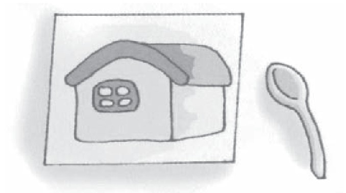 1在纸上画一座小房子,把汤匙凹面放在画前,发现从汤匙的凹面中看到的映出的小房子图像走了样儿。