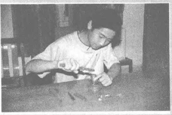 作者在制作易拉瓶盖