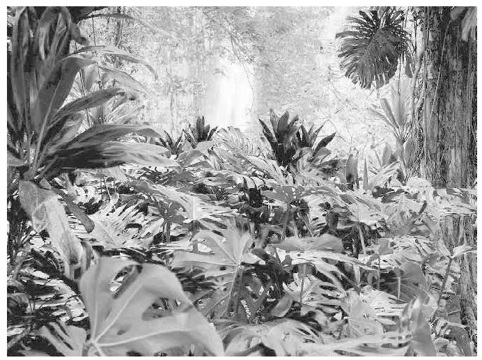 下了许多个小时的雨终于停下了,到处都是湿润的。丛林孕育着蓬勃的生机,树叶上密密地镶缀着晶莹的水珠。花儿都绽放了,空气中充满了馥郁的芳香。