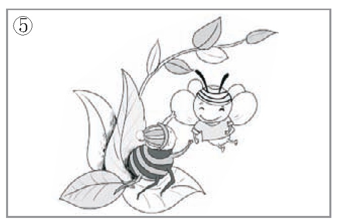 5.(小蜘蛛拿着自己织的网状衣服要给小蜜蜂穿,蜜蜂特别高兴。)