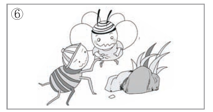 6.(小蜜蜂被衣服粘住了,怎么动也脱不下了,小蜘蛛站在一旁,很惭愧的样子。)